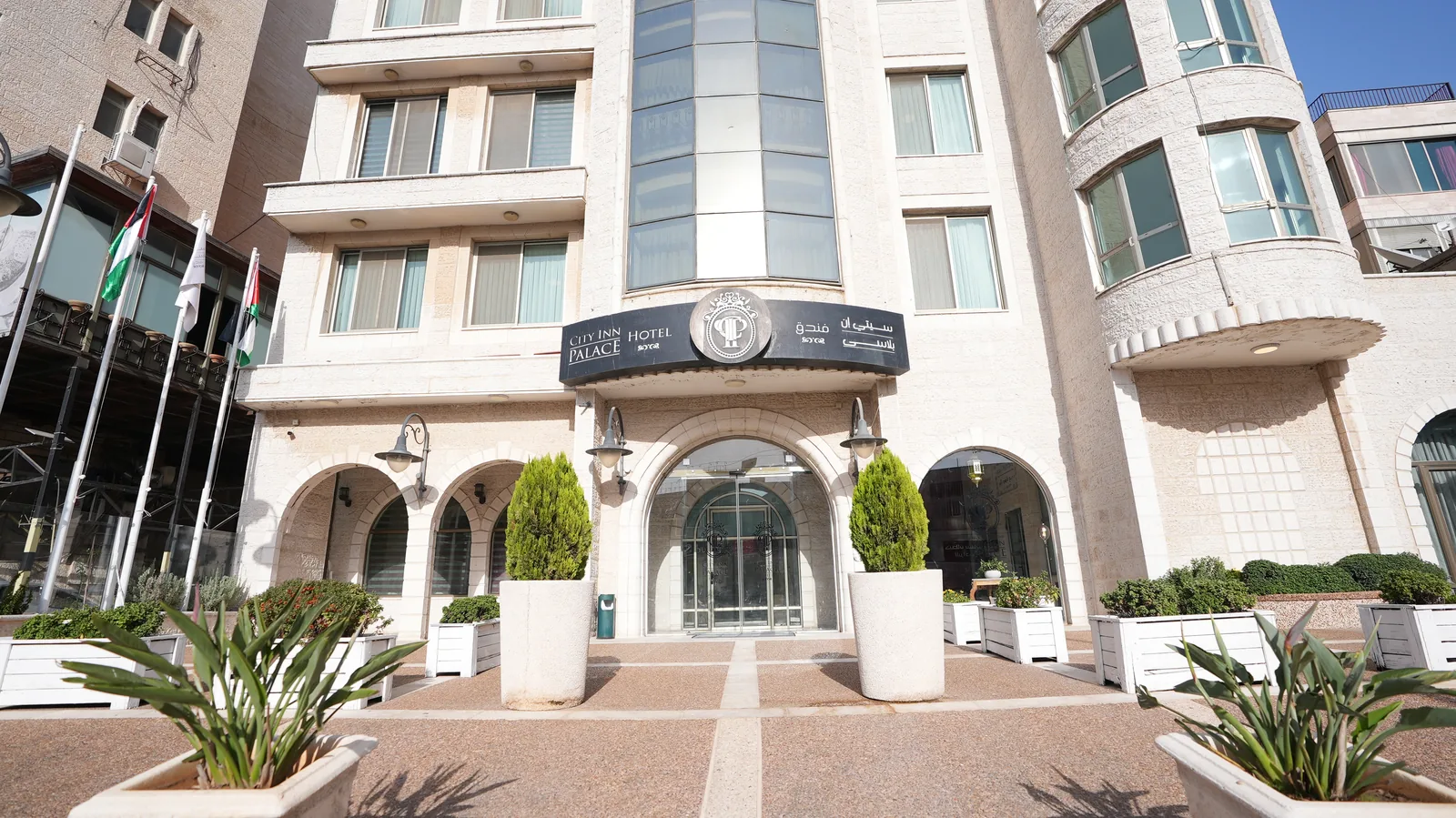 يقع فندق سيتي إن بالاس عند المدخل بين رام الله والبيرة، على بُعد خمس دقائق سيراً من ميدان المنارة وقريباً من المراكز المصرفية والحكومية. نستضيف المسافرين بغرض السياحة والأعمال والمؤتمرات والأعراس — جميعها تحت سقف واحد. الفندق مُجدد عام 2015، يضم موقف سيارات سفلي آمن لـ 35 سيارة، شبكة Wi-Fi فايبر سريعة (1:1، 100/100 ميغابت)، مطعم الخان المحبوب، مقهى مع خدمة الأرجيلة، تراس، وأربع قاعات مناسبات تتسع من 10 وحتى 120 ضيف.